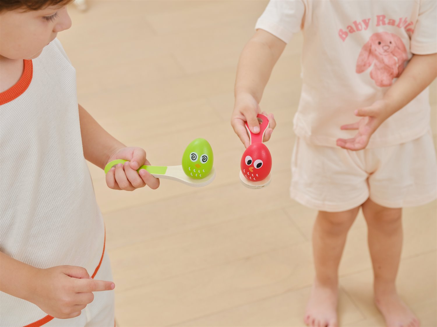 Includes: 4 wooden spoons and 4 colourful eggs.