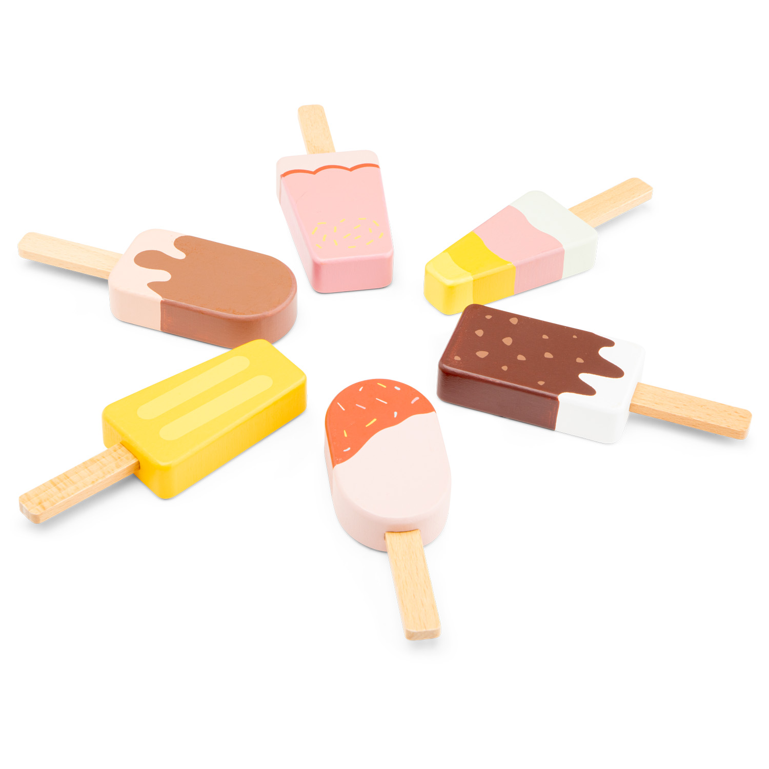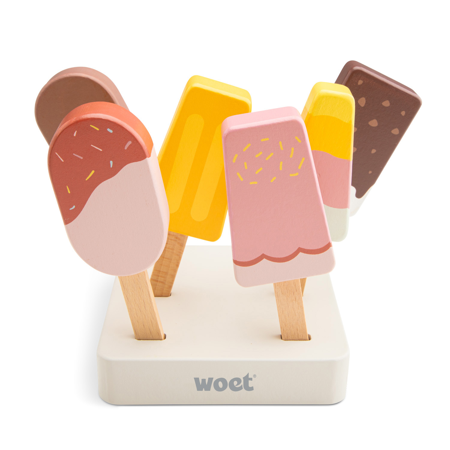 This wooden ice lollies set from New Classic Toys is the perfect treat for imaginative play. This charming set features six wooden ice lollies, which all fit in the wooden base for easy storage and display. Whether hosting a picnic, running an ice cream stand, or simply enjoying a refreshing treat, these wooden ice lollies inspire endless pretend play possibilities.