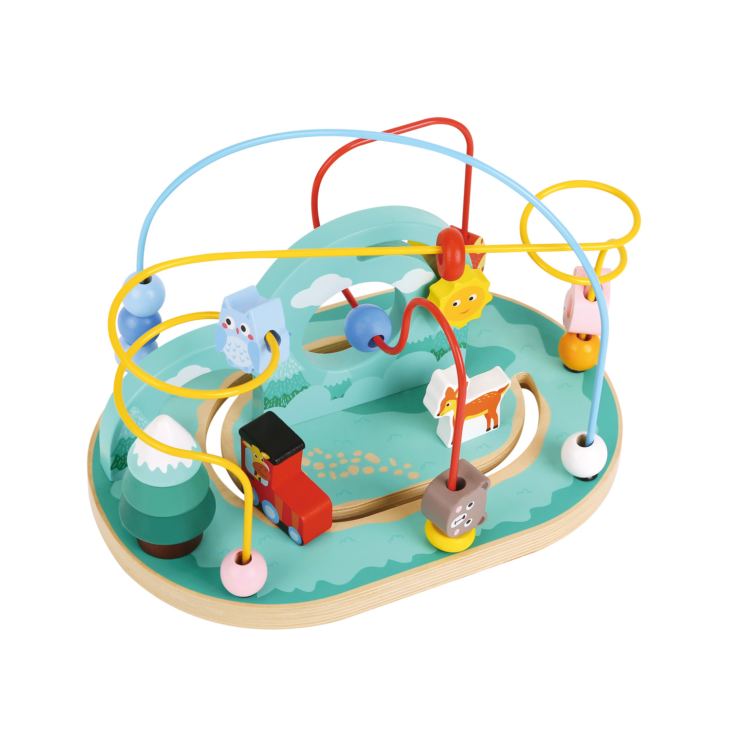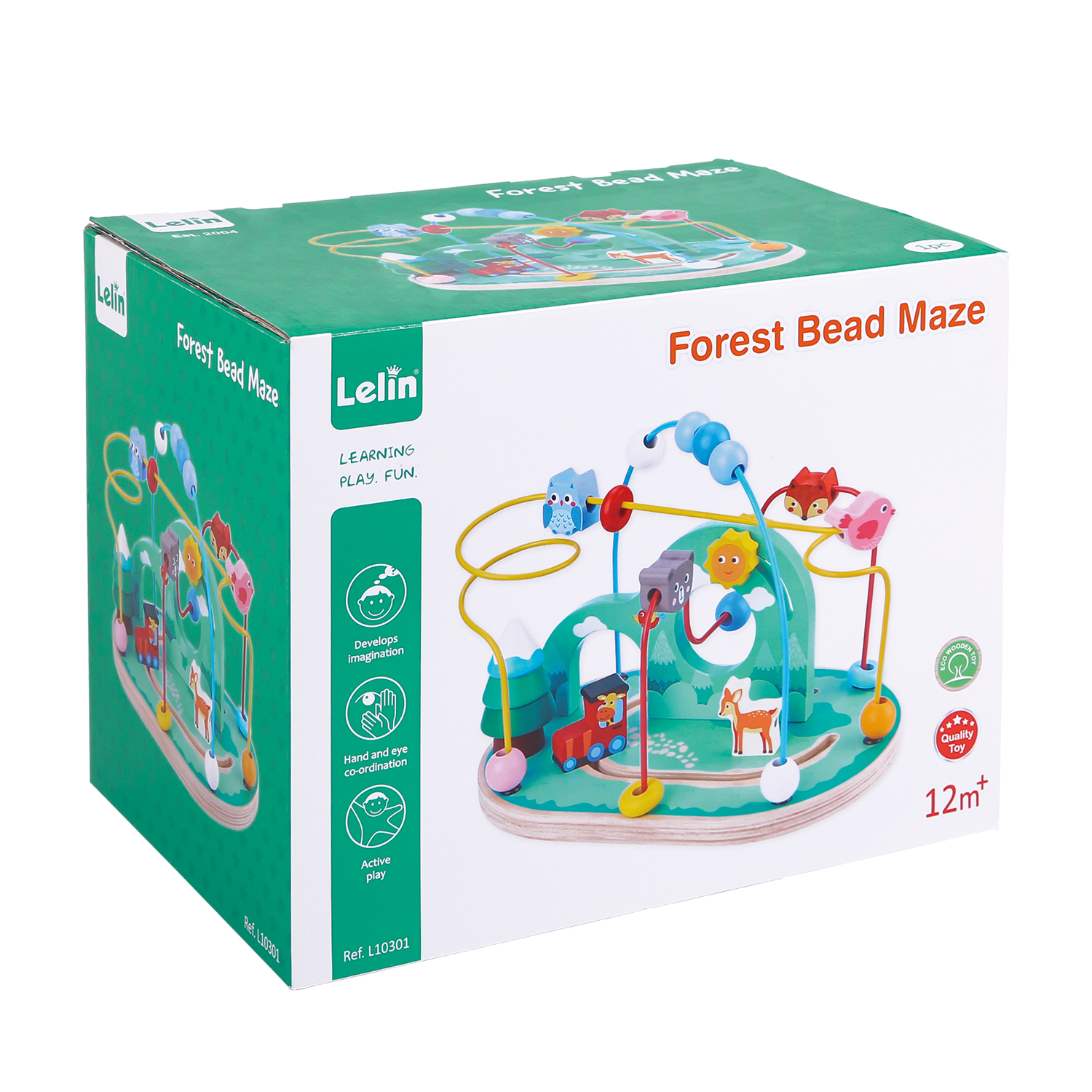 This colourful wooden toy bead maze from Lelin® takes little ones on a journey through the forest. Featuring a cheerful forest scene, it encourages children to move the beads, animals and shapes along the looping wires while exploring cause and effect.