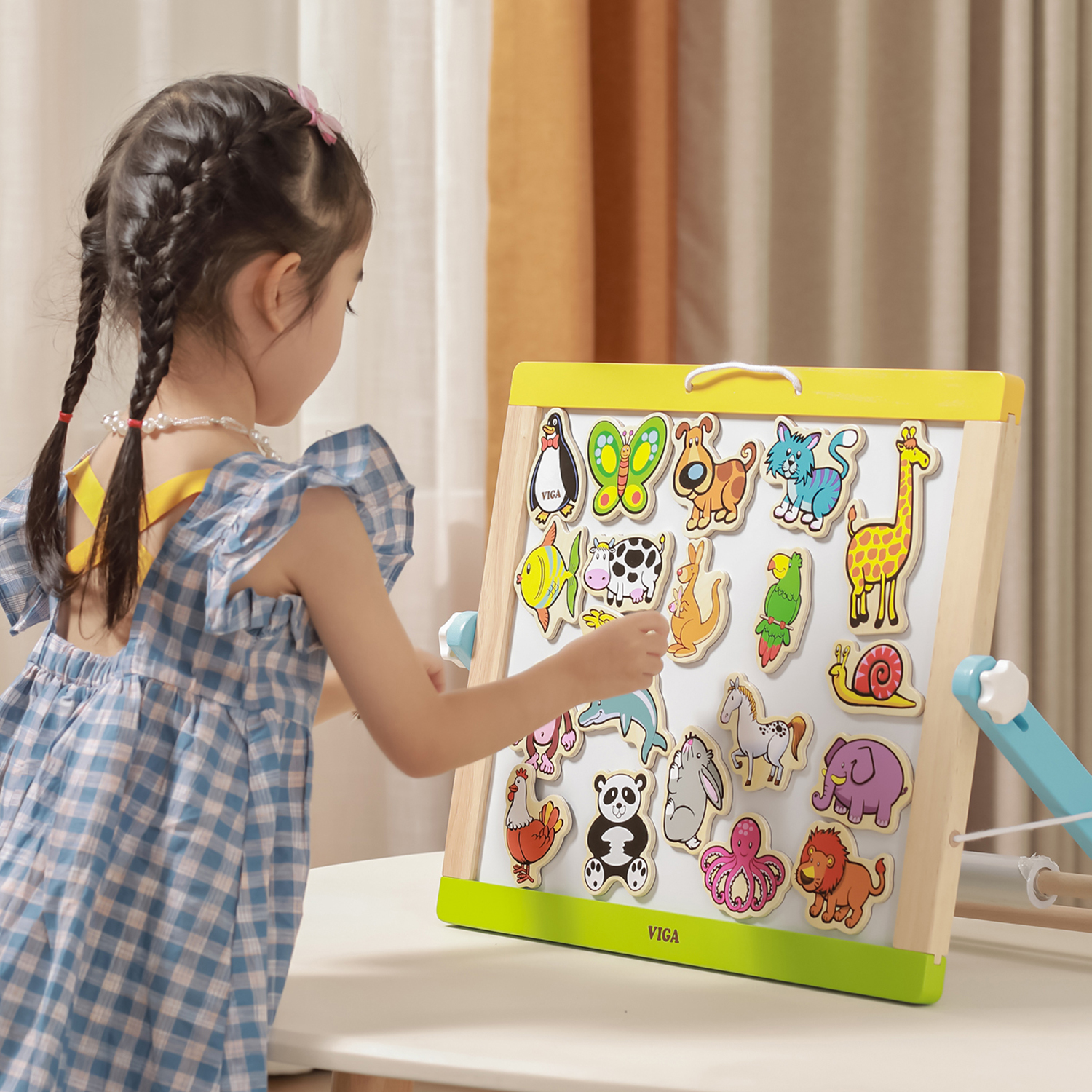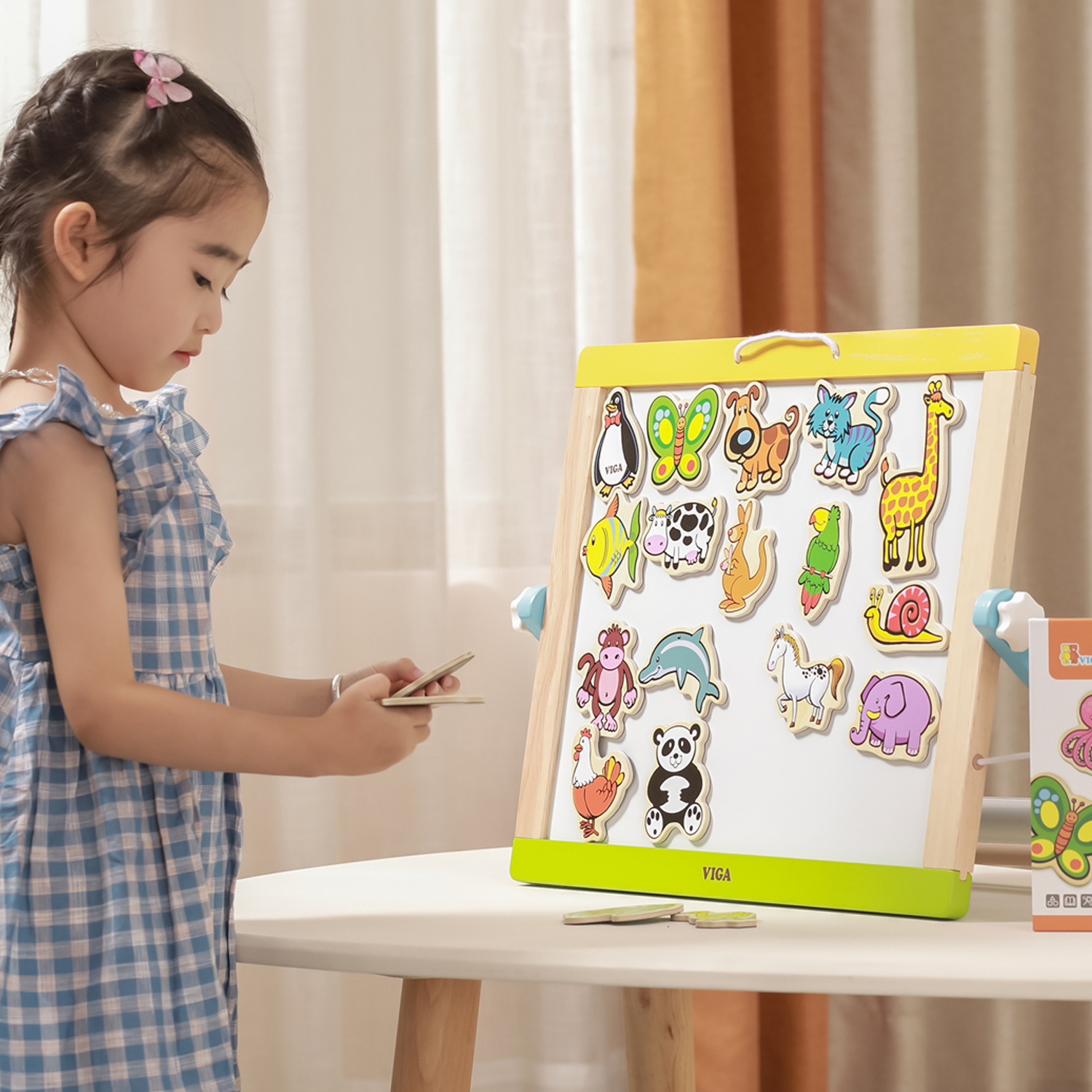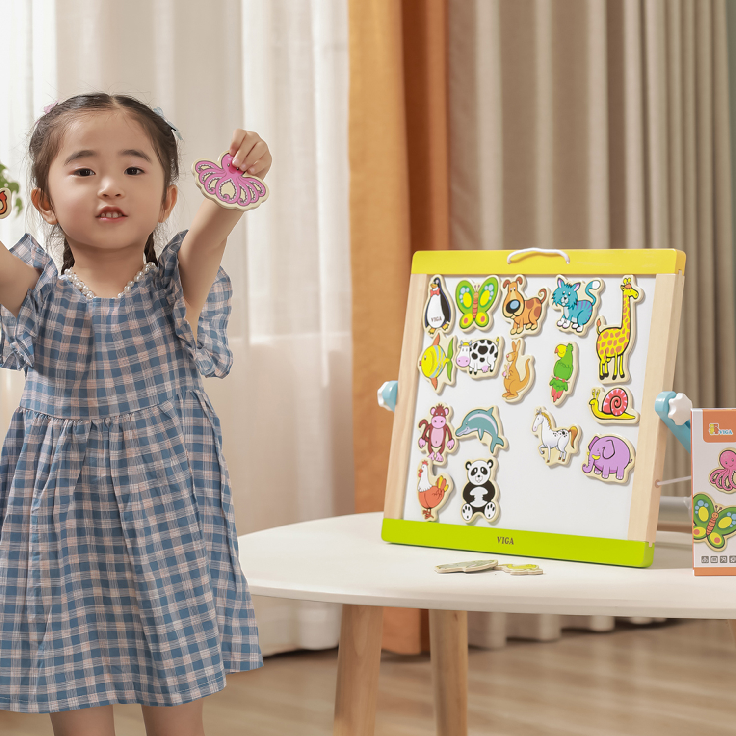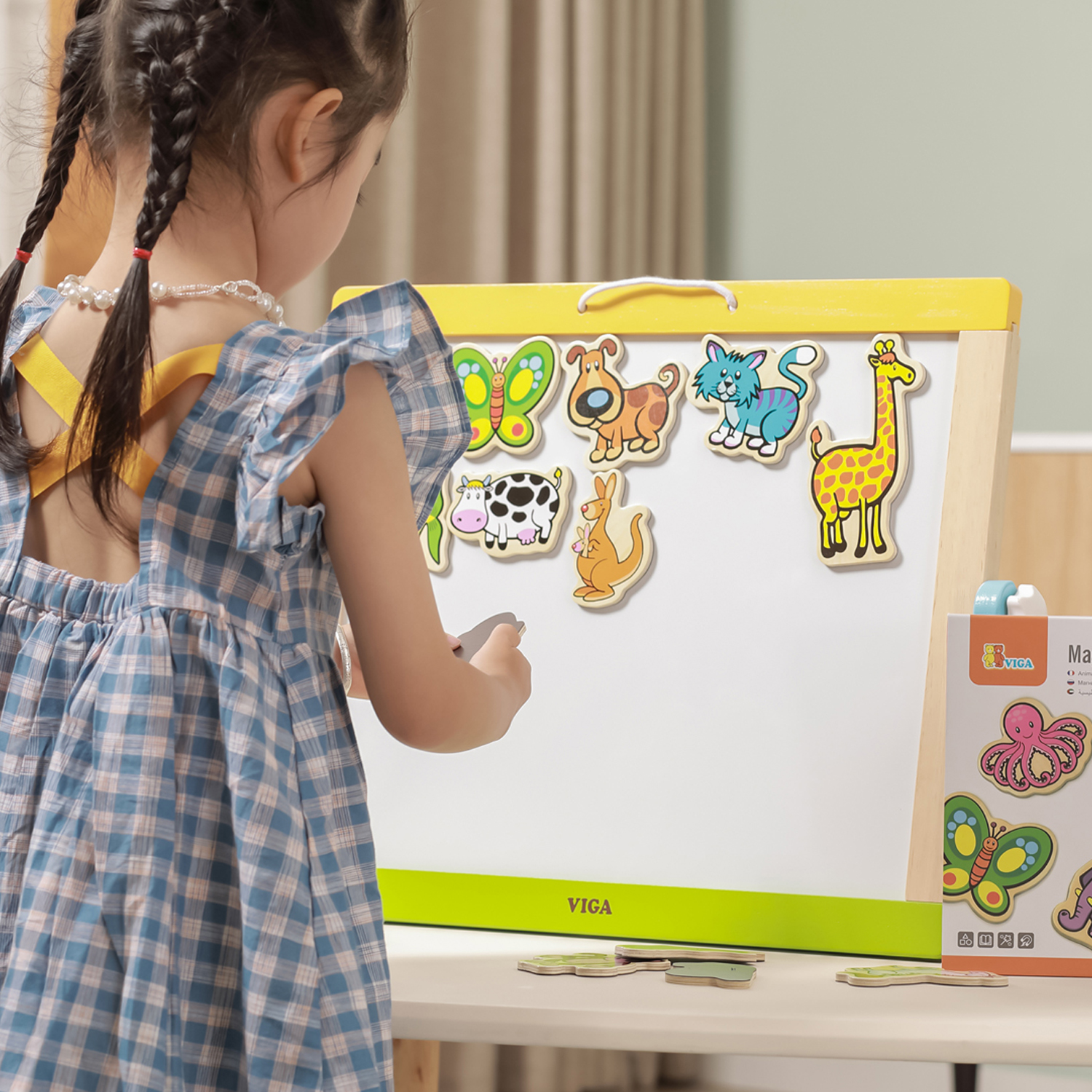 20 pieces colorful magnetic characters each set for sticking to the fridge or any magnetic surface. Nice color box for easy storage.