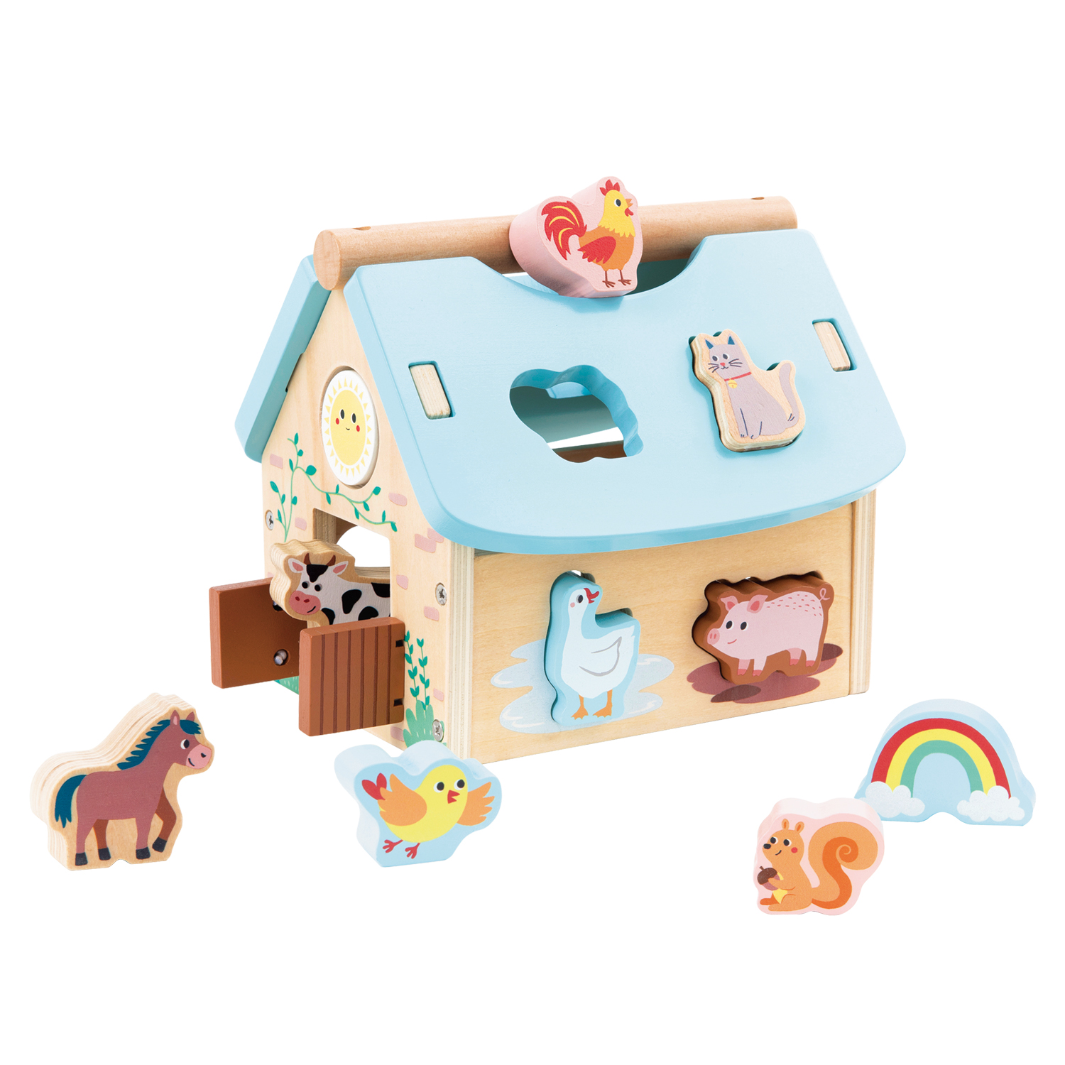 As they play, children develop shape and colour recognition, fine motor skills and problem-solving abilities. The sturdy handle on the roof makes it easy to carry, encouraging play anywhere at home or on the go.