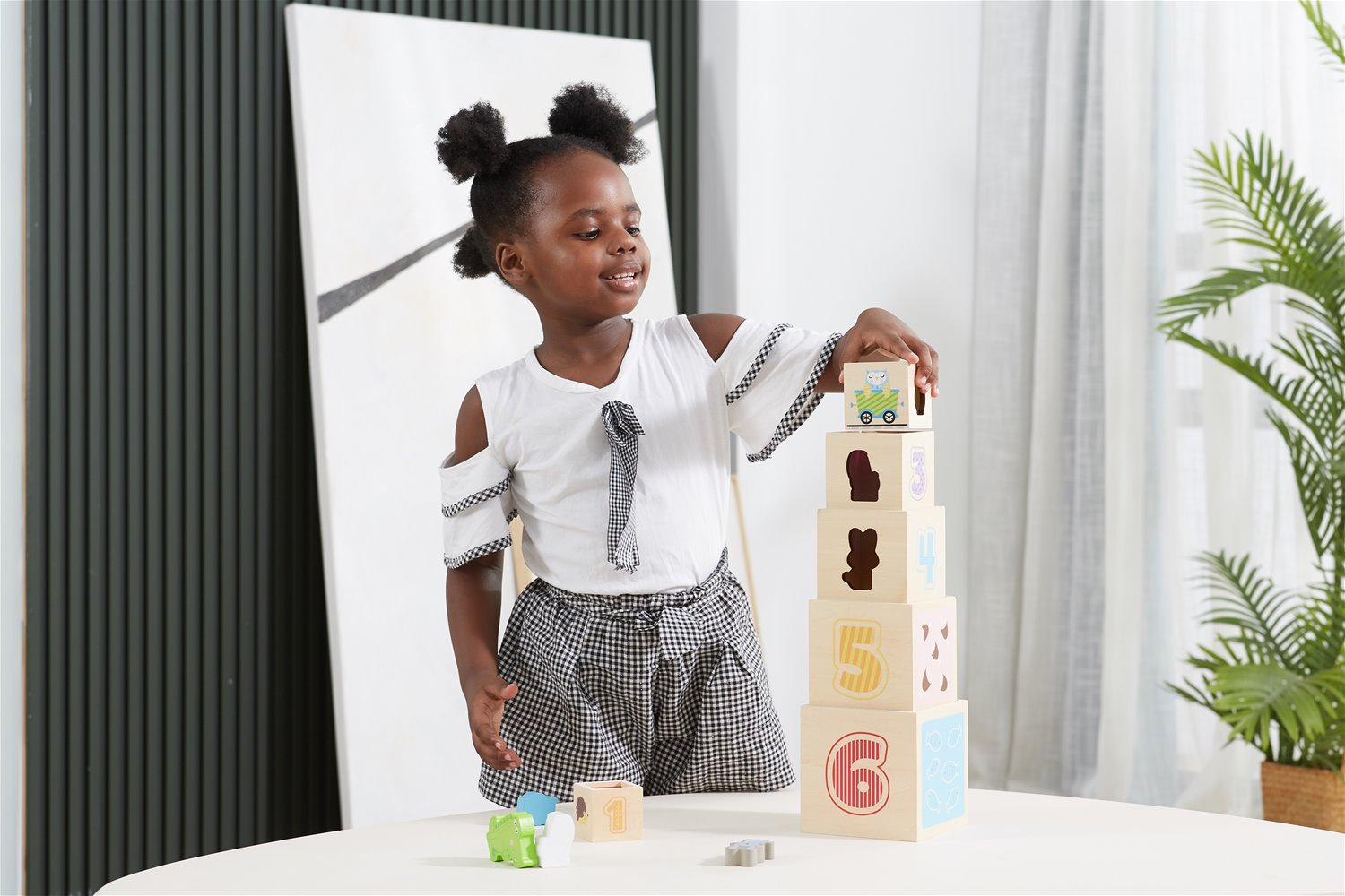 Stacking, sorting and building help children develop fine motor skills, balance and hand-eye coordination while learning to count from 1 to 6. A timeless wooden toy classic that inspires creativity and open-ended play.